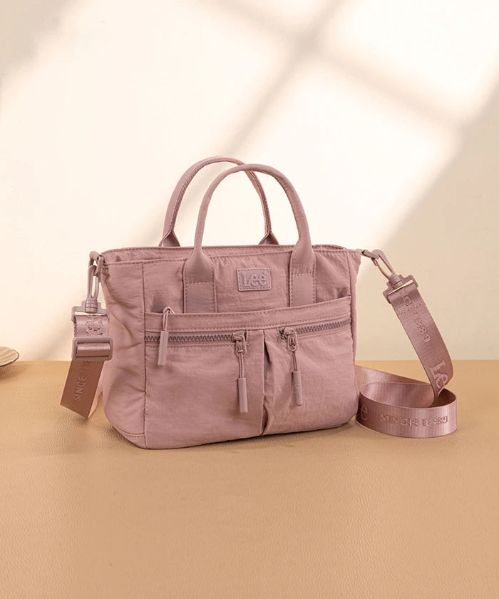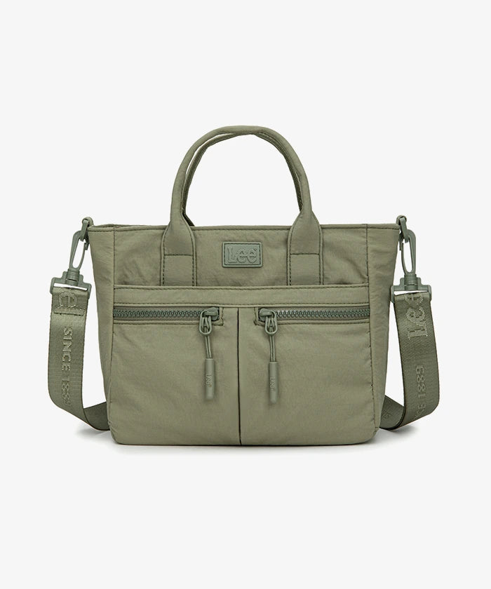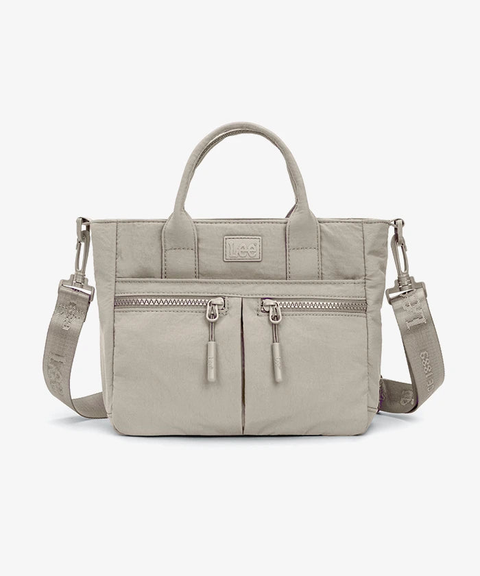 Discover the Lee Multi-Pocket Tote Bag, a minimalist and functional design with dual front zip pockets and a zippered pocket on the back.