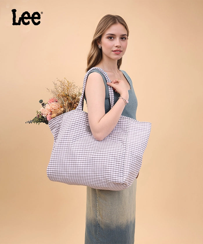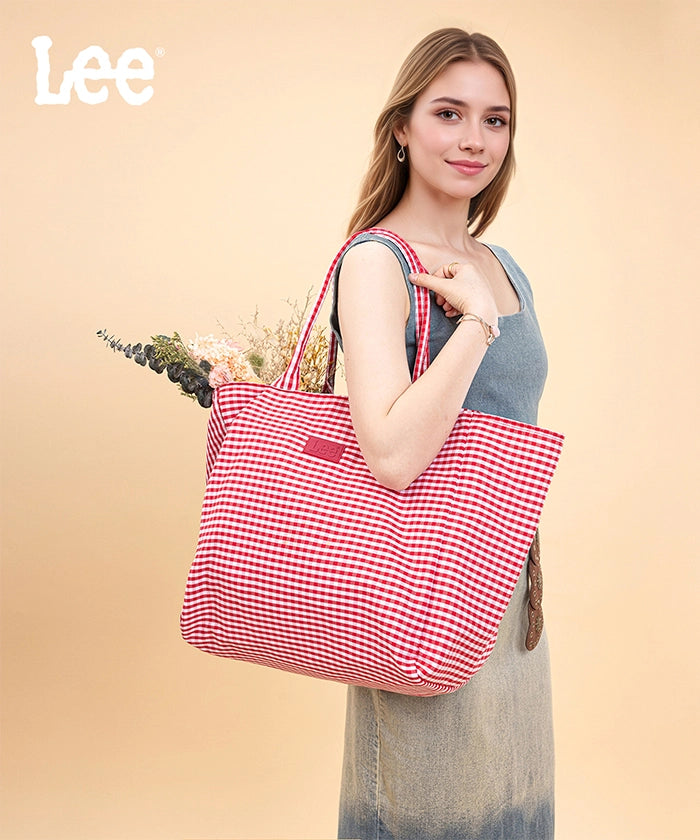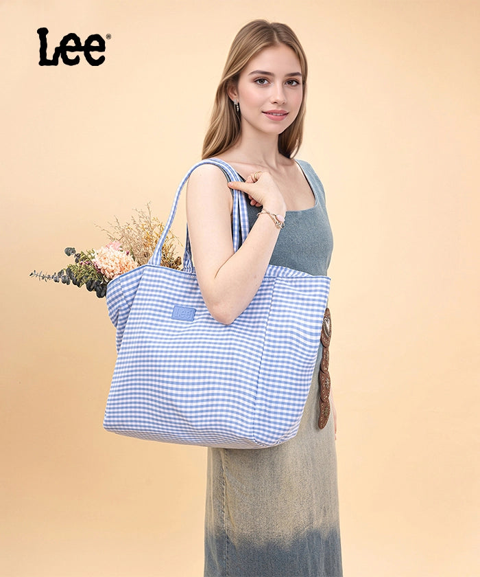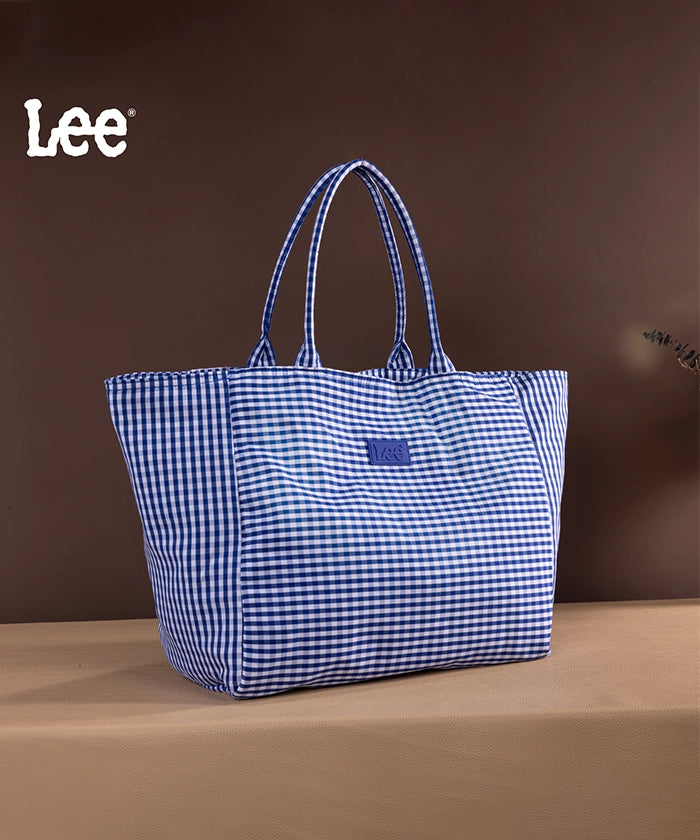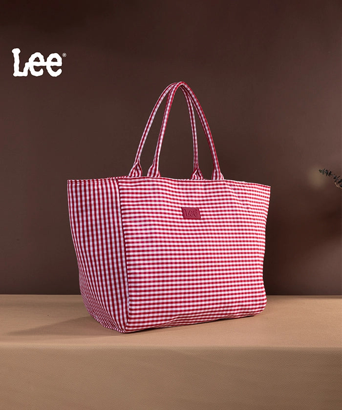 Crafted from soft fabric with a classic plaid print and Lee logo, this extra-large tote bag offers generous storage with an interior zip pocket and open compartment. It features comfortable dual flat straps. Spacious and practical, it ensures effortless carrying and everyday versatility
