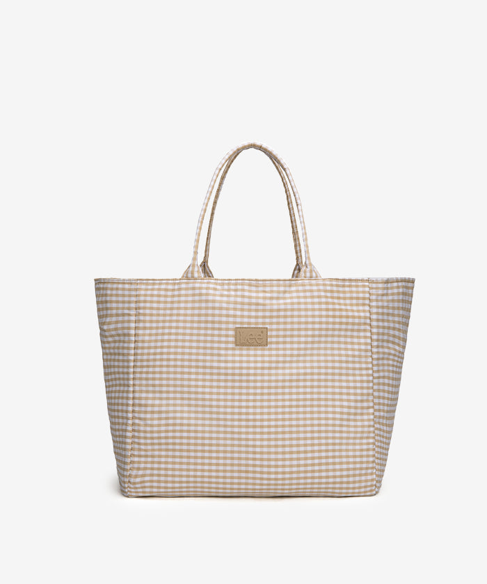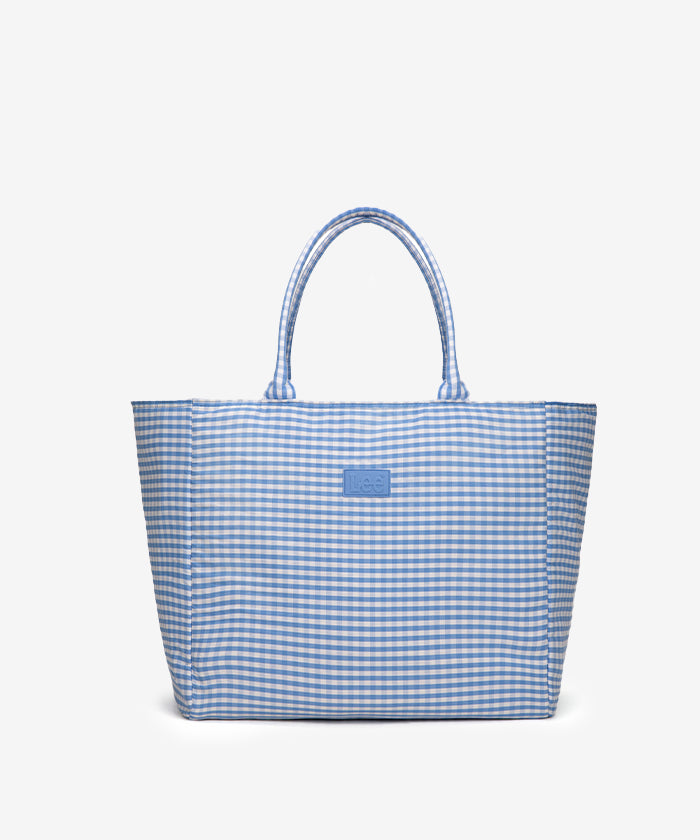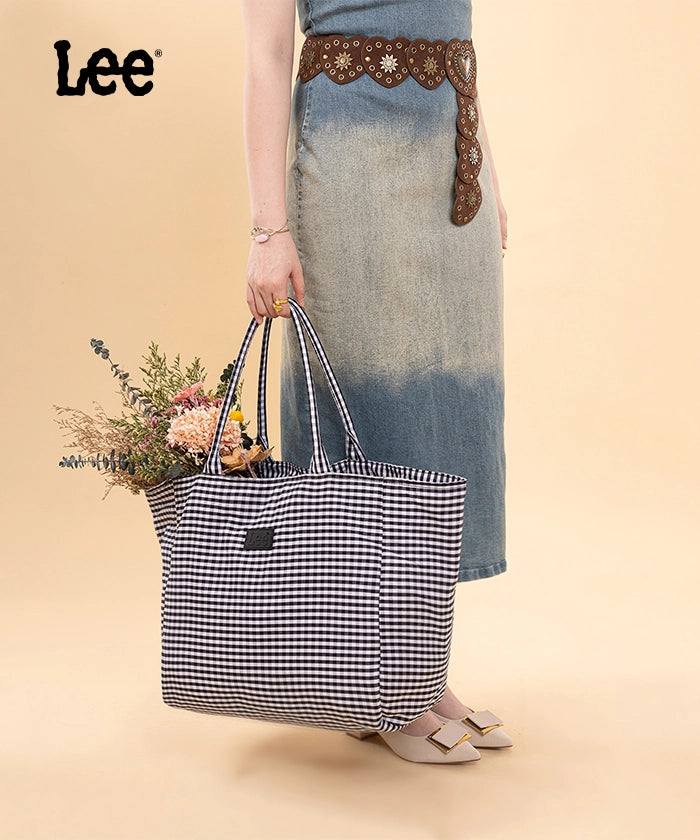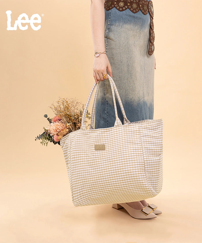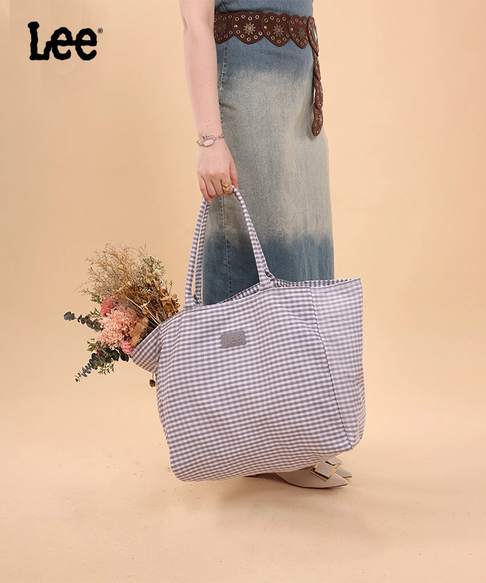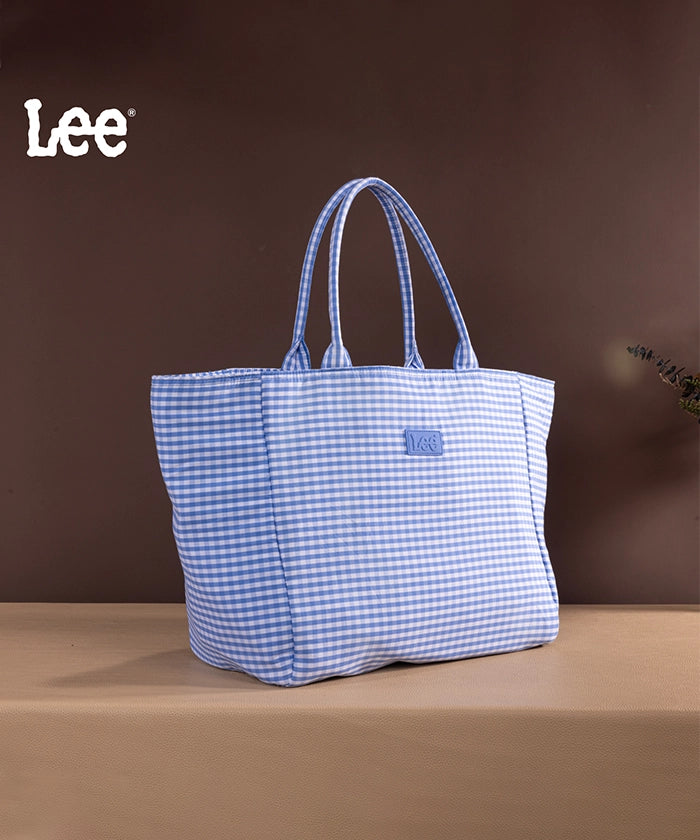 Crafted from soft fabric with a classic plaid print and Lee logo, this extra-large tote bag offers generous storage with an interior zip pocket and open compartment. It features comfortable dual flat straps. Spacious and practical, it ensures effortless carrying and everyday versatility