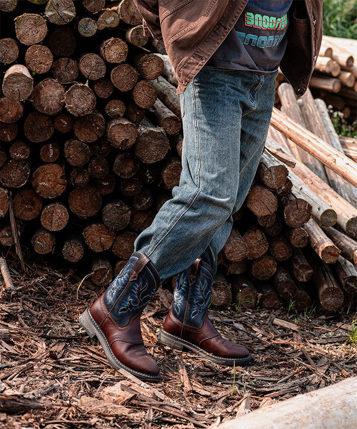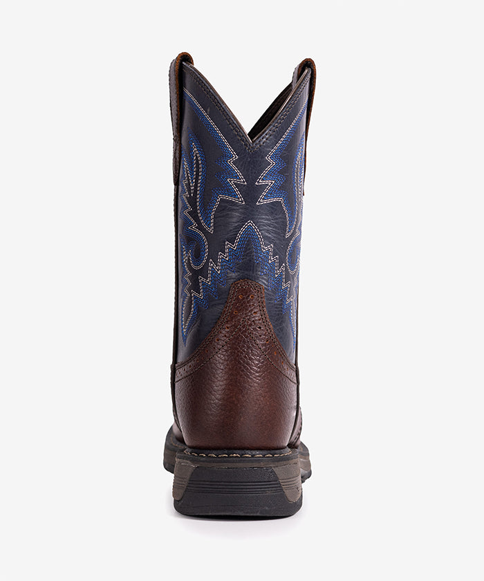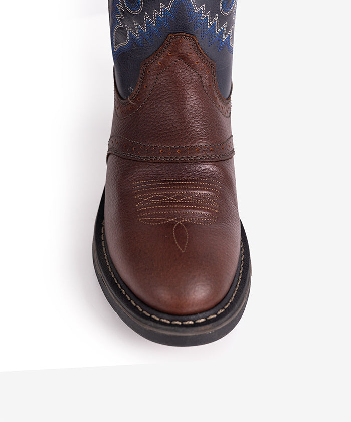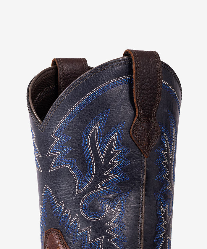 These men’s leather shoes feature a striking blue “Enchantress” design, intricate embroidery, and colorful patchwork. The layered upper adds depth and style, combining craftsmanship with modern flair. Perfect for making a bold, stylish statement.