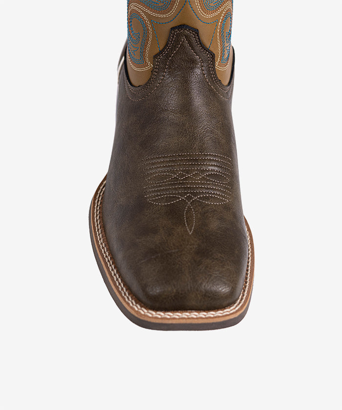 These men’s Desert Circle Boots feature a deep brown upper with contrasting tan embroidery on the shaft and a distinctive circular cutout. The patchwork design and earthy tones create a rugged yet artistic look, perfect for adding a unique touch to any outfit.