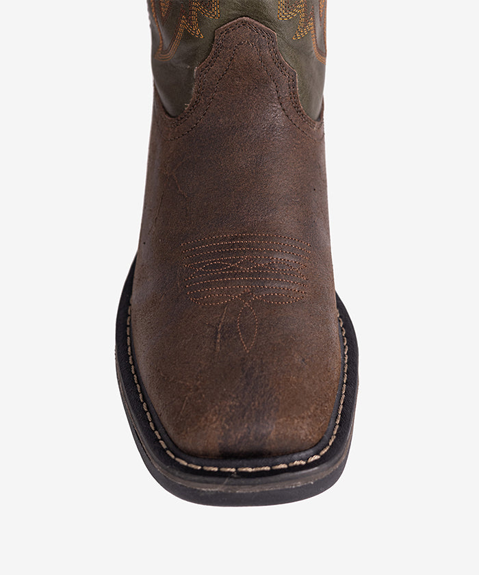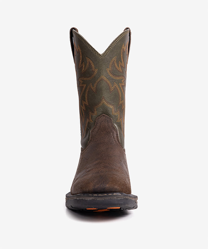 These men's vintage worker boots feature distressed brown leather, colorful patchwork, and intricate embroidery. Built with a comfortable EVA-rubber sole, they combine rugged durability with timeless style. Perfect for casual wear or adding a touch of vintage flair to any outfit.