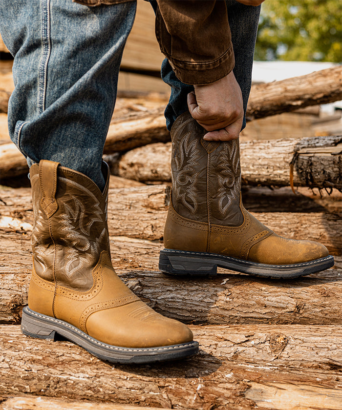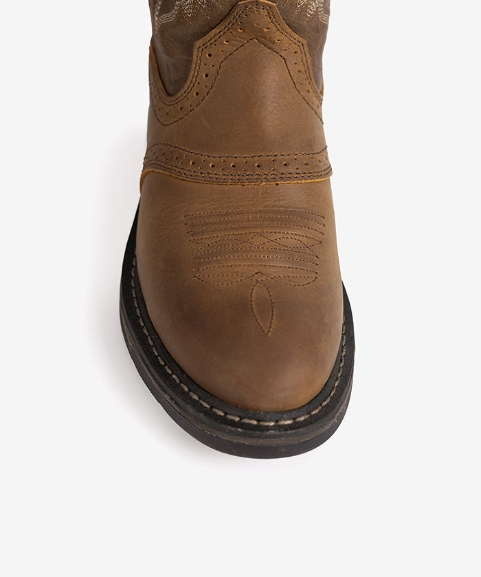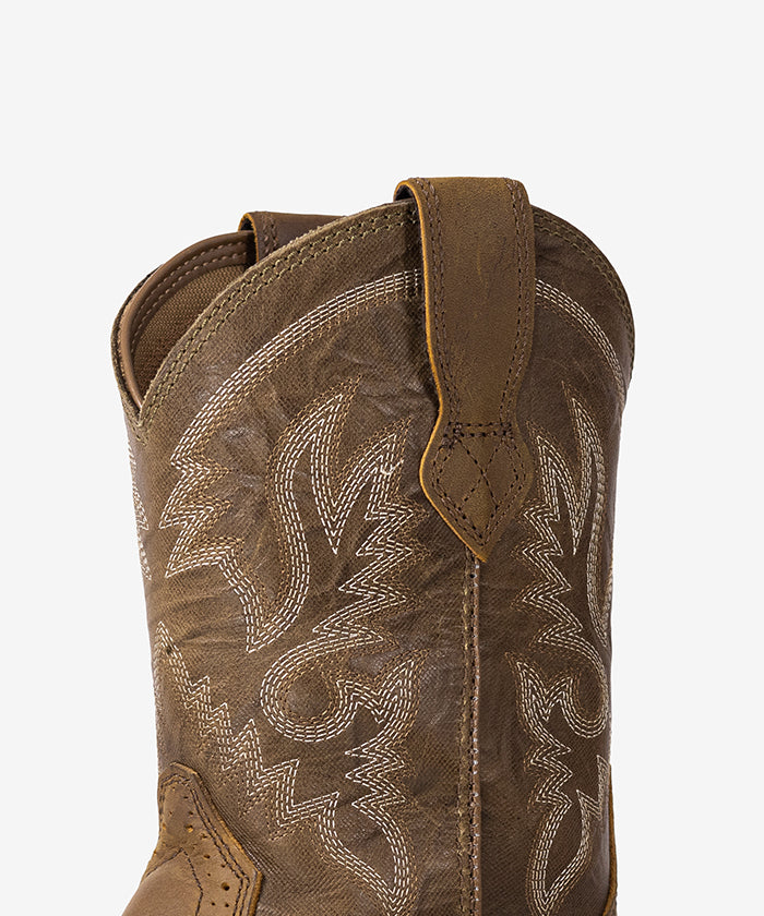 These men's vintage desert Western boots feature a round toe, embroidered details, and a durable EVA-rubber sole. Rugged, stylish, and perfect for casual or Western-inspired looks.