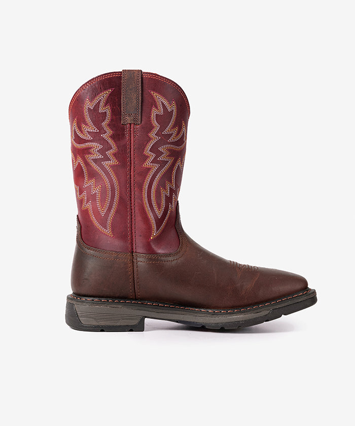Unleash rugged Western style with the Wild Scarlet Men’s Boots, crafted from full-grain leather with detailed embroidery. Bold red tones and a wide square toe deliver durable comfort and iconic cowboy flair.