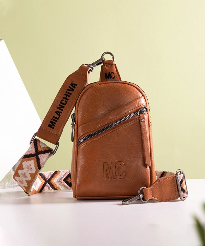 This Milan Chiva Aztec Sling Bag combines sleek design with everyday practicality. Crafted from vegan leather, the sling bag features a top zipper closure and a back zipper pocket for secure and convenient storage.