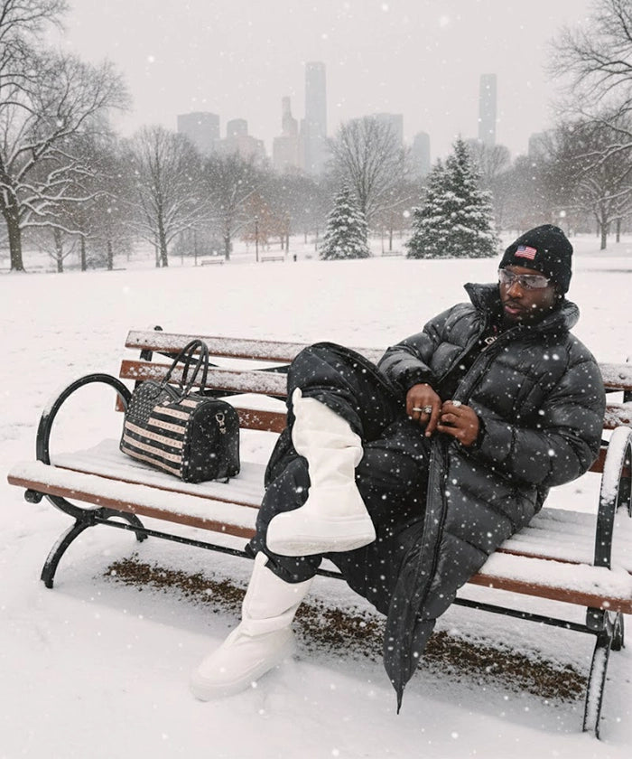 The Montana West studded bag is designed with a bold American flag and accented with silver stars and crystal studs on durable synthetic leather. This rugged yet stylish black studded bag features a secure top-zip closure, dual handles, and a detachable shoulder strap for versatile carrying options.;