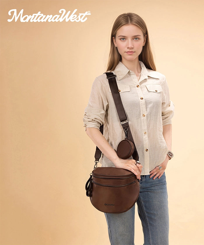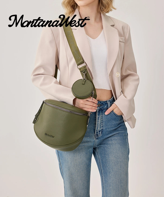 The Montana West bum bag is a versatile blend of fashion and function, offering hands-free convenience with smart organization. This stylish bum bag is crafted from vegan leather/polyester fabric, featuring dual zip compartments and a detachable coin pouch for quick access.