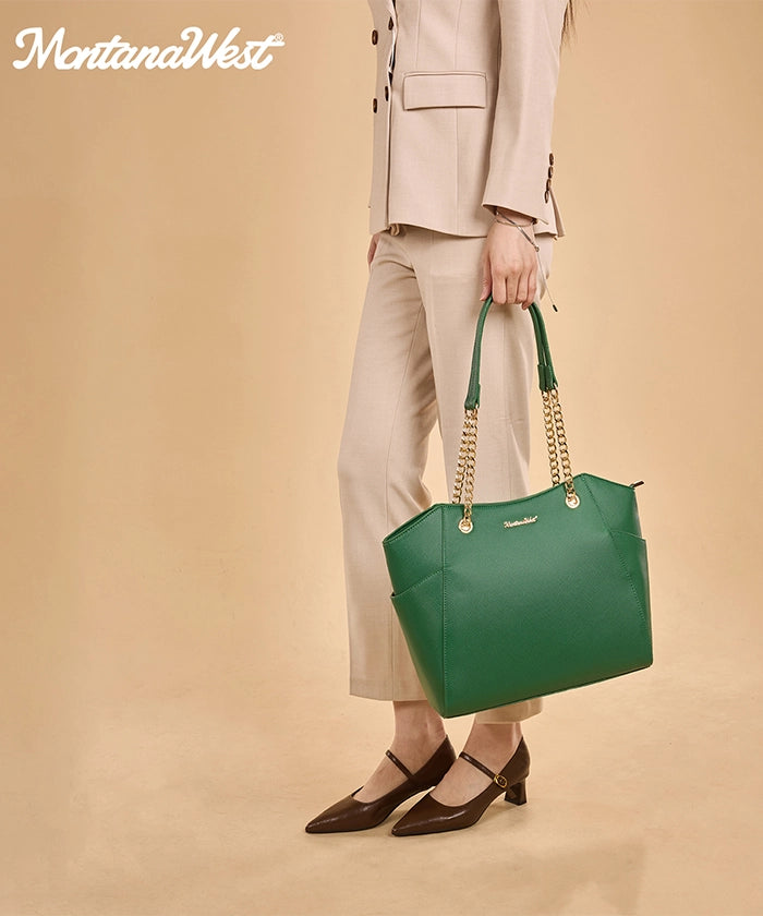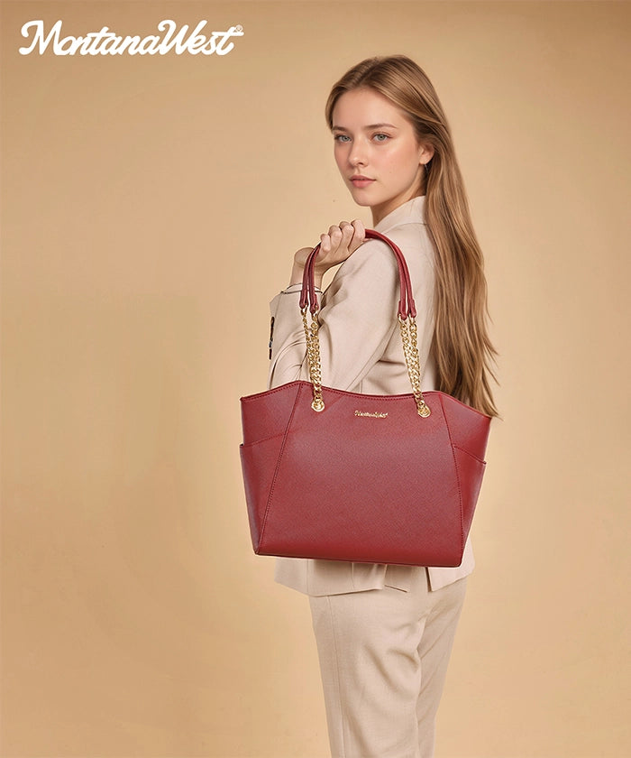 Discover the Montana West Chain Tote Bag, a classic and versatile accessory for your daily needs. Crafted from durable PU leather with a structured shape, creating a clean and refined urban look.