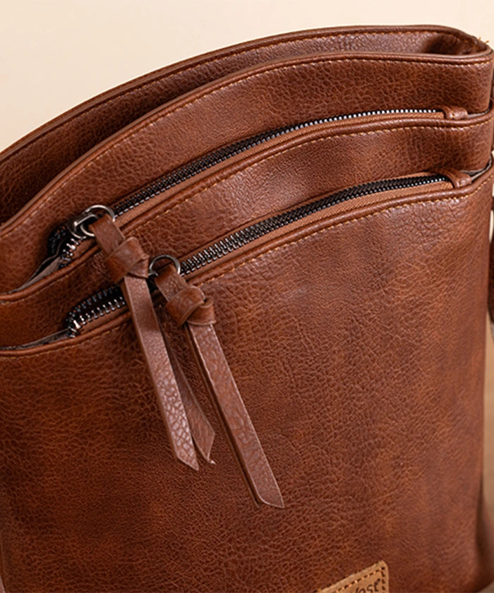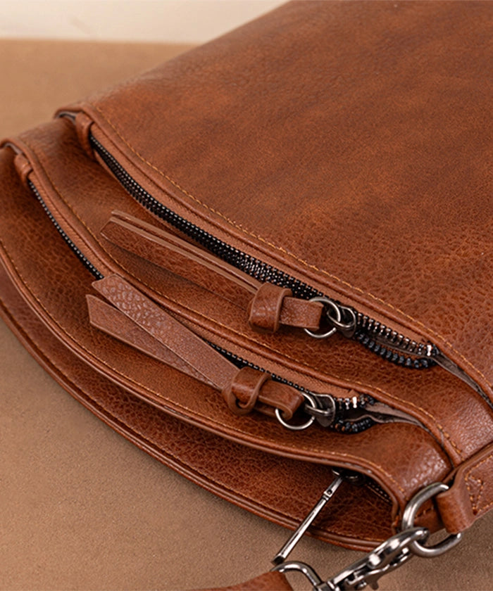 Multiple zip compartments keep essentials organized, while the compact shape fits daily needs—perfect for shopping, travel, or casual outings. Holds phone, wallet, and keys with ease. A woman's crossbody purse designed for hands-free convenience and lasting wear.