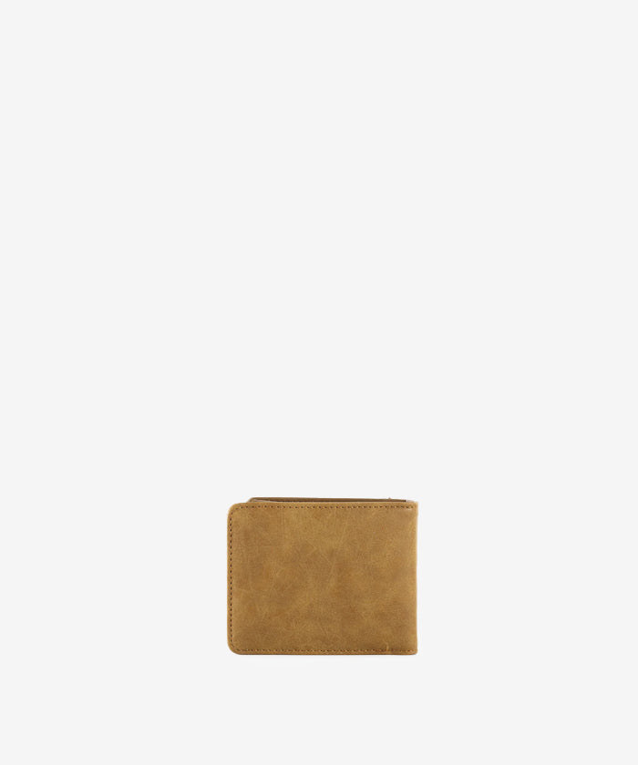 Made of PU leather, this bi-fold wallet has:
