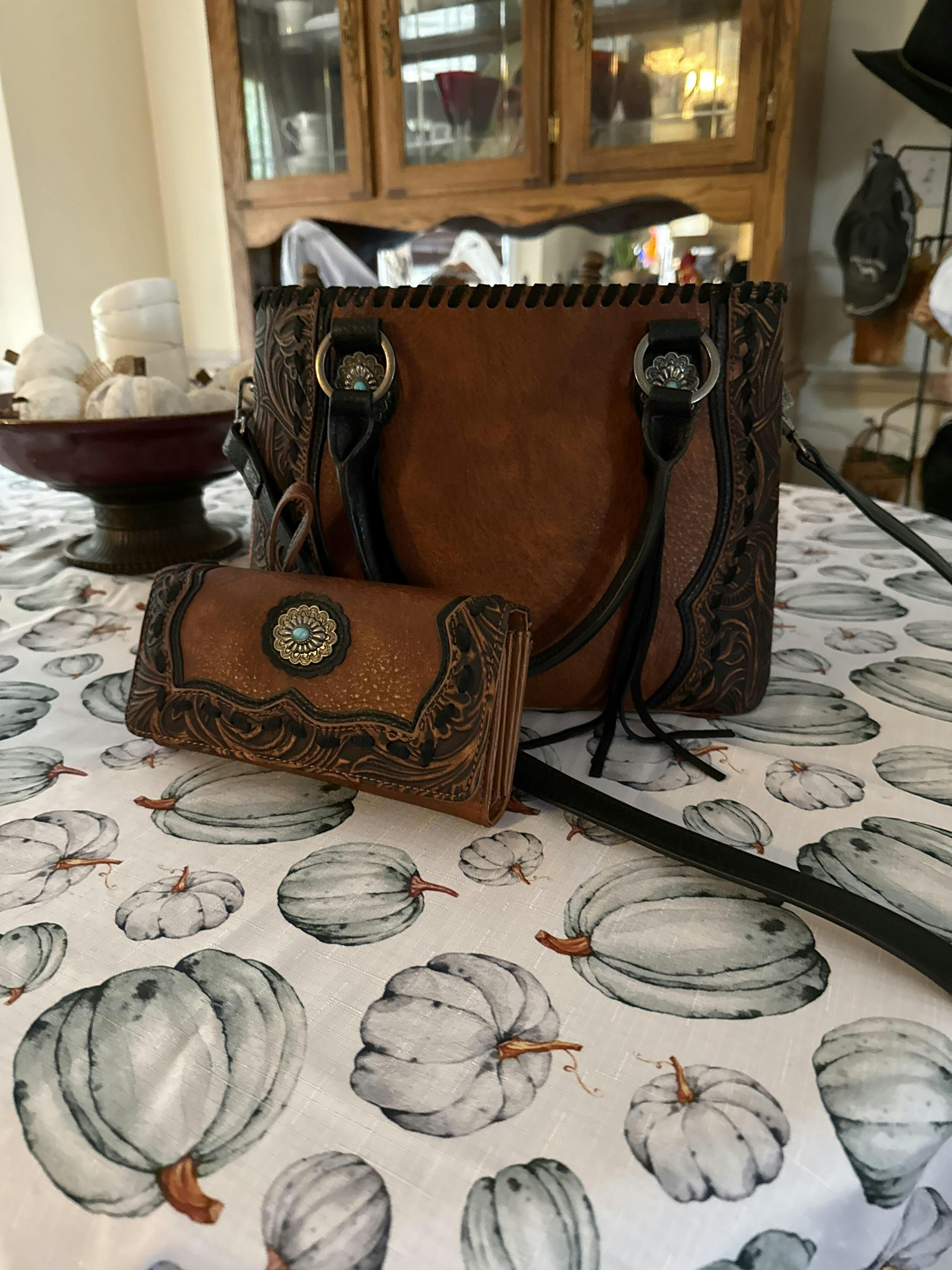 Trinity Ranch Floral Tooled Concho Tote Bag Set
