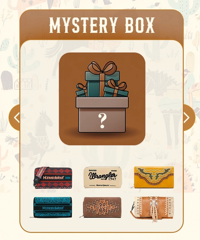 The Mystery Box is shipped at random and you may receive any style of wallet or wristlet from the Montana West brands.