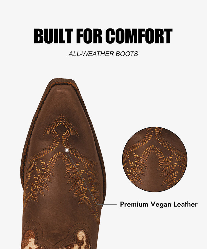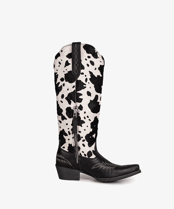 • Hand Painted Classic Horse-Hair Cow Printed Resistant Western Cowboy Boots For Women.