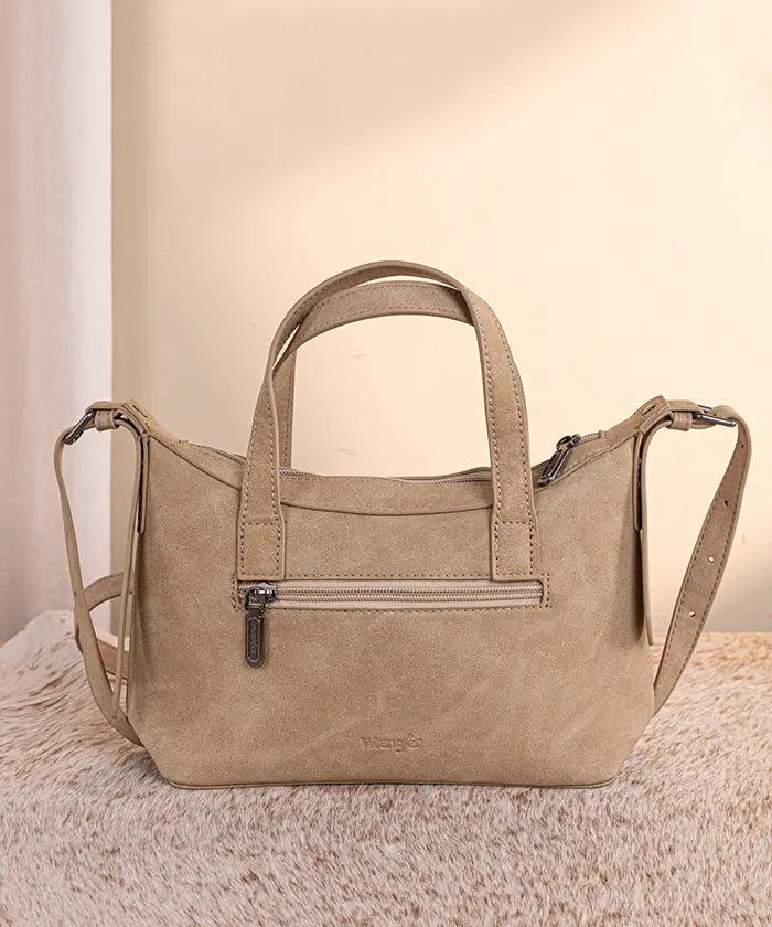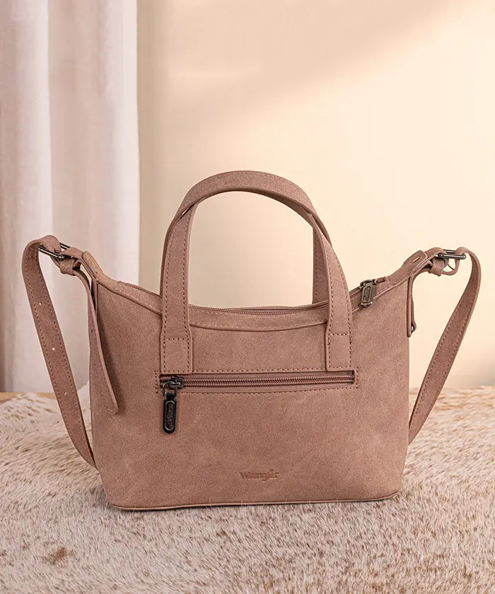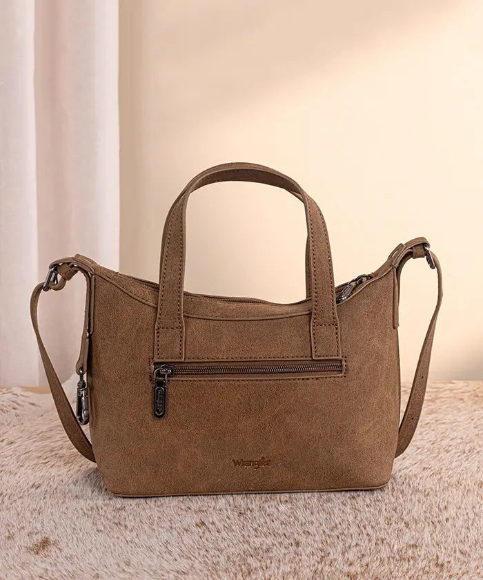 A prominent Wrangler logo applique graces the front, and protective metal feet on the bottom for stability. Inside, you'll find a zippered pocket and open pockets in this Wrangler crossbody bag for organized storage, like a phone, wallet, and keys during daily use or travel.