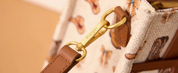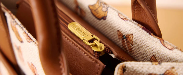 Details: Multiple internal and external pockets; dangling charm