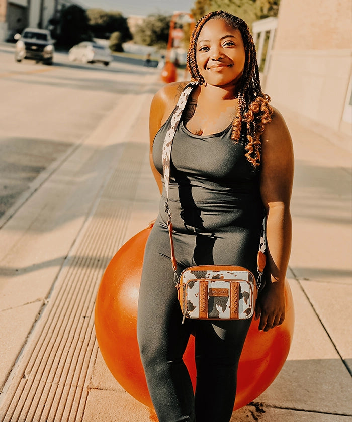 Adorned with cow print, it's versatile enough for any occasion and pairs well with any outfit.