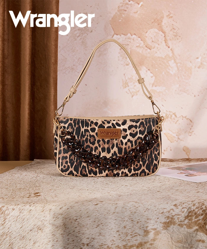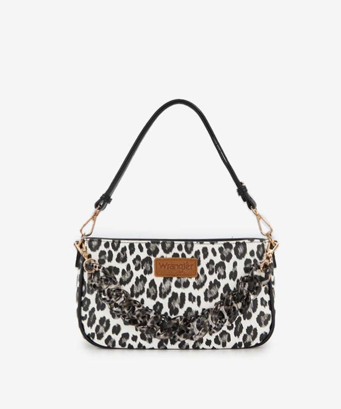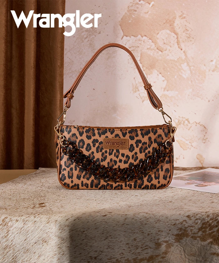 The Wrangler leopard print shoulder bag is a fashionable and lightweight carry-all designed for everyday use. Made from premium synthetic leather, it features a bold chunky chain that doubles as a stylish shoulder strap, adding a modern edge to your look.