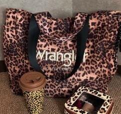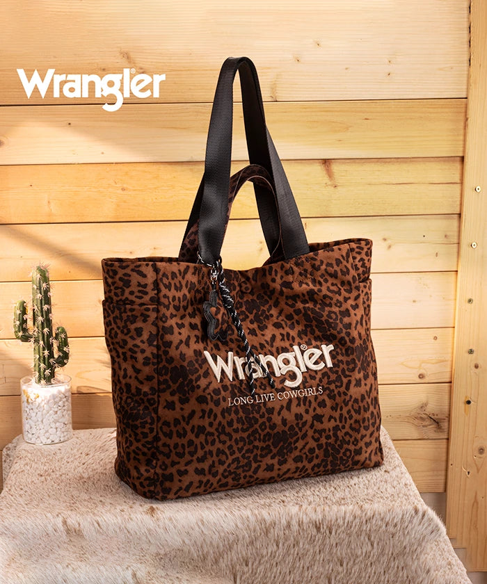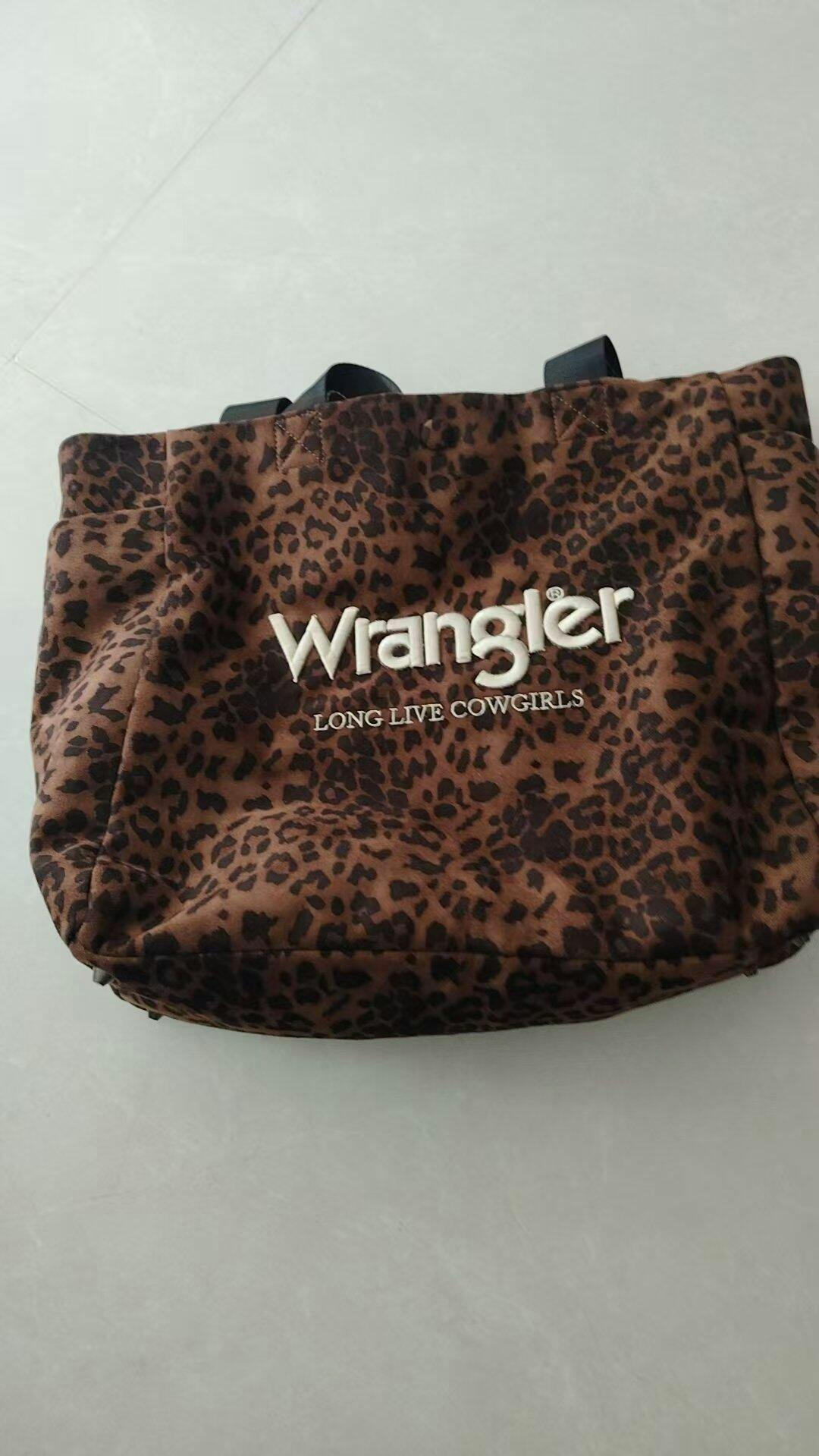 The Wrangler leopard print tote bag combines bold Western style with everyday functionality. Designed with a striking branded logo, it features a durable canvas construction and a roomy interior.