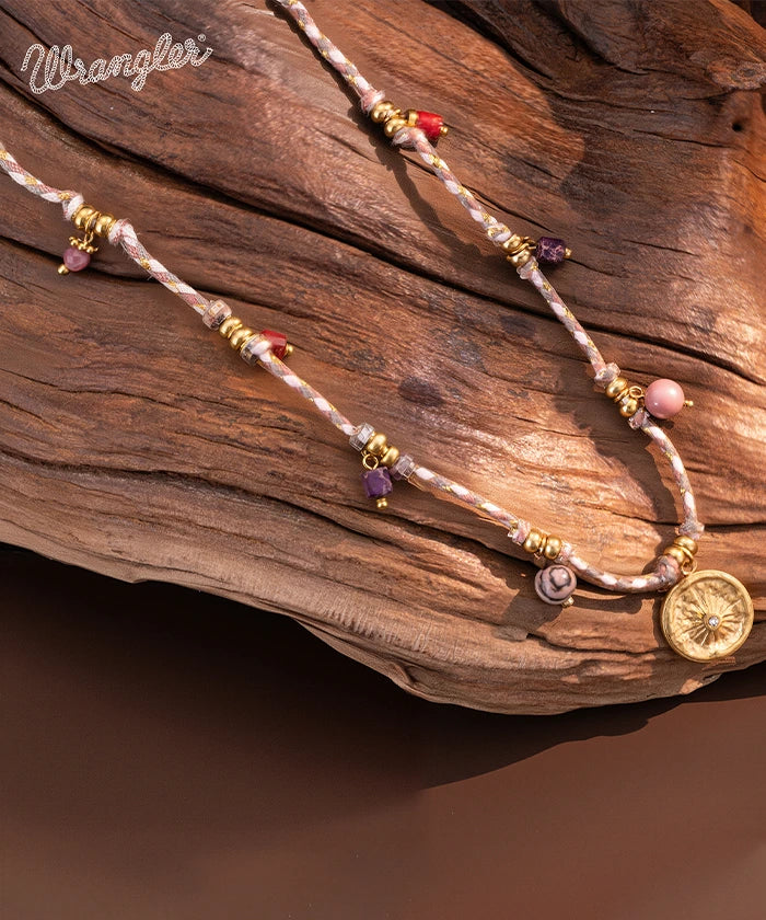 Touches of green stone beads add a grounding, earthy energy, evoking the rolling hills and sunlit meadows of the open range. Perfect for the modern cowgirl or free-spirited wanderer, this necklace tells a story of strength, harmony, and connection to the wild.